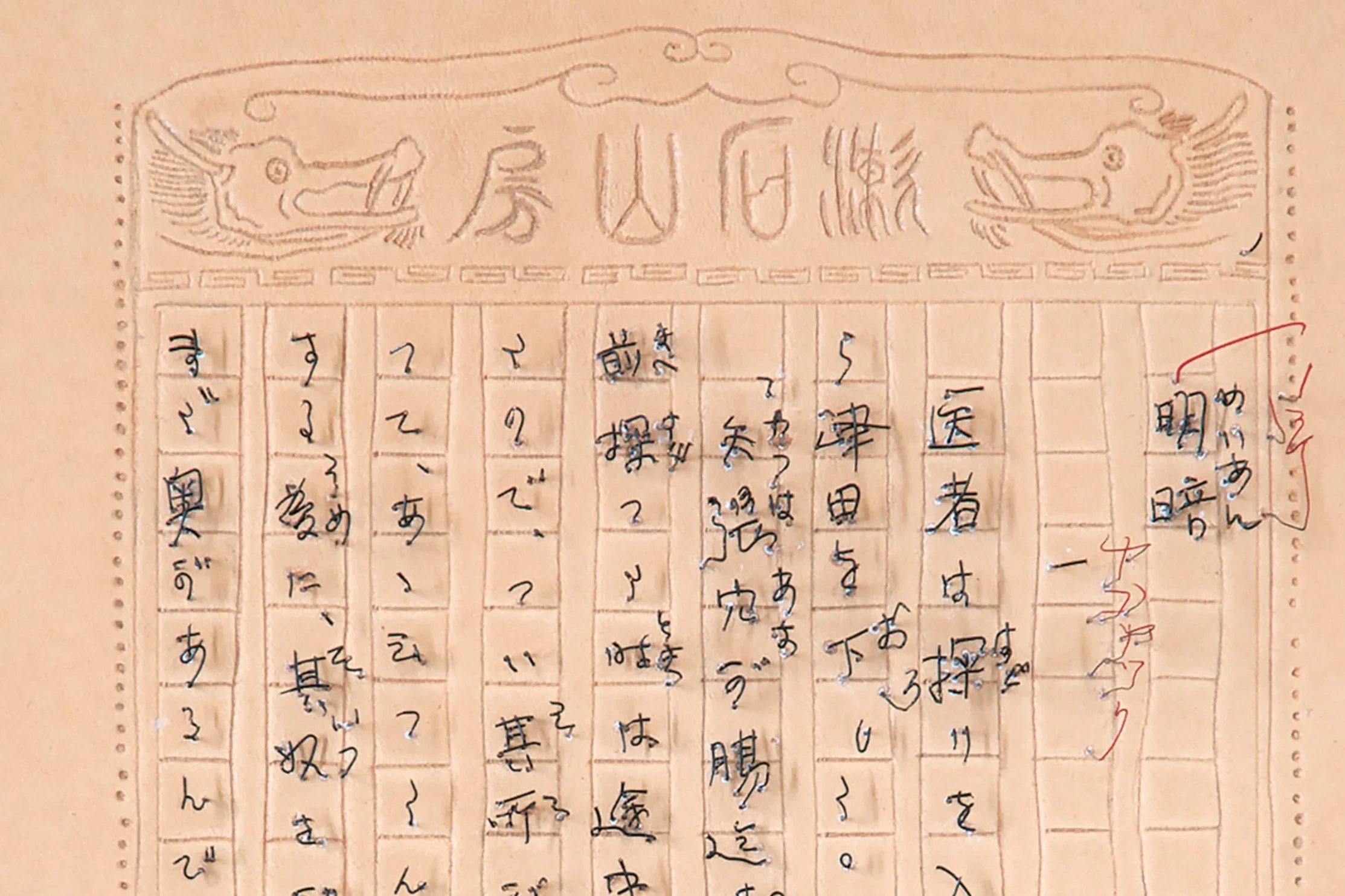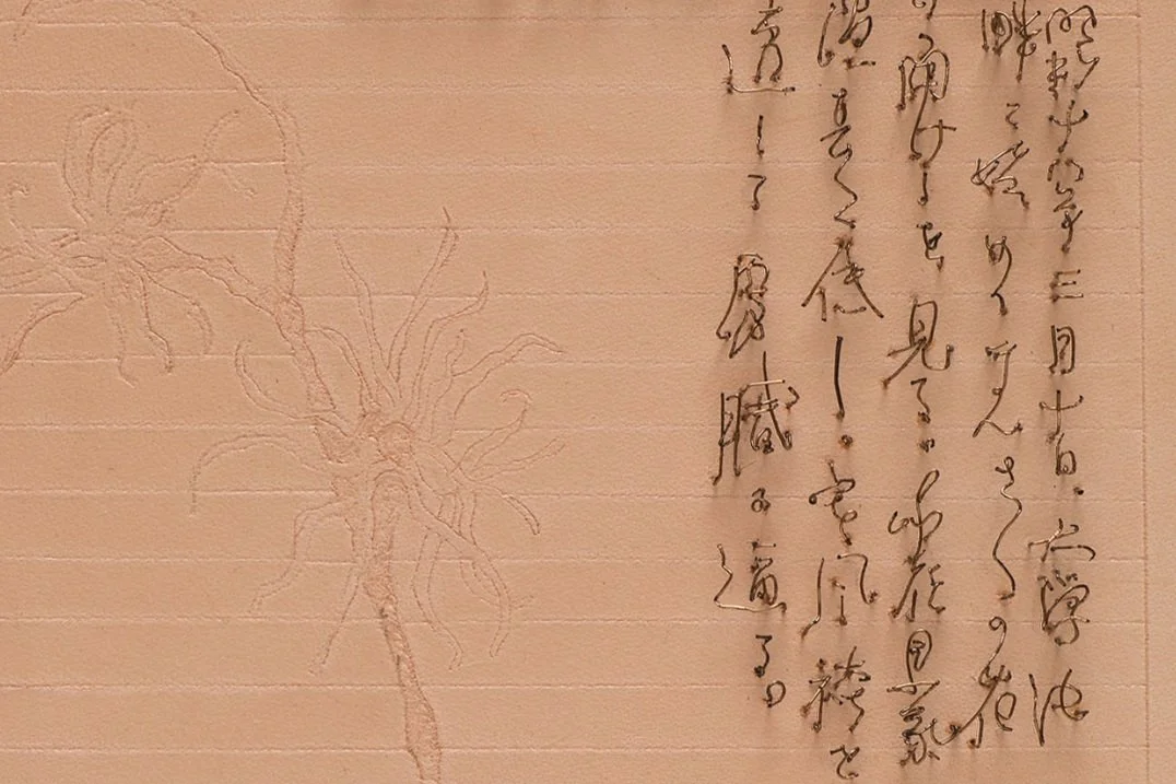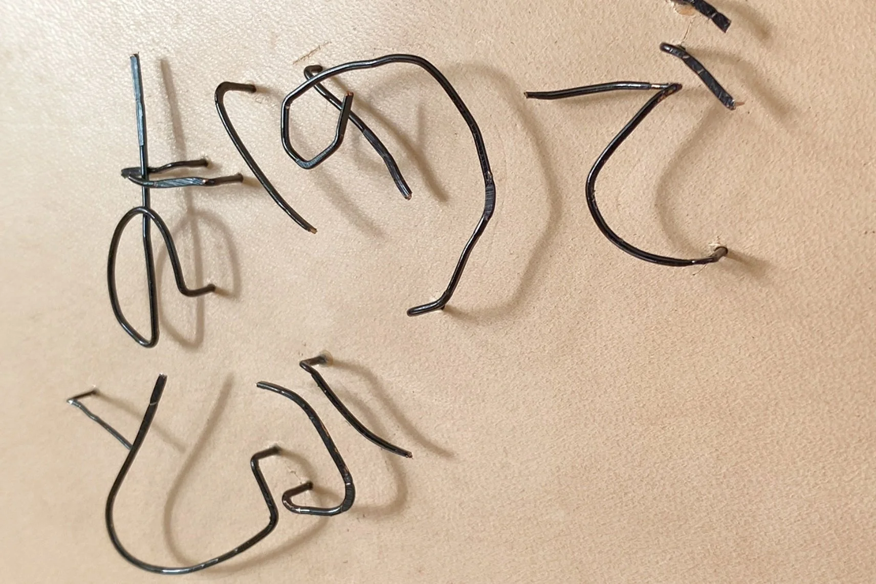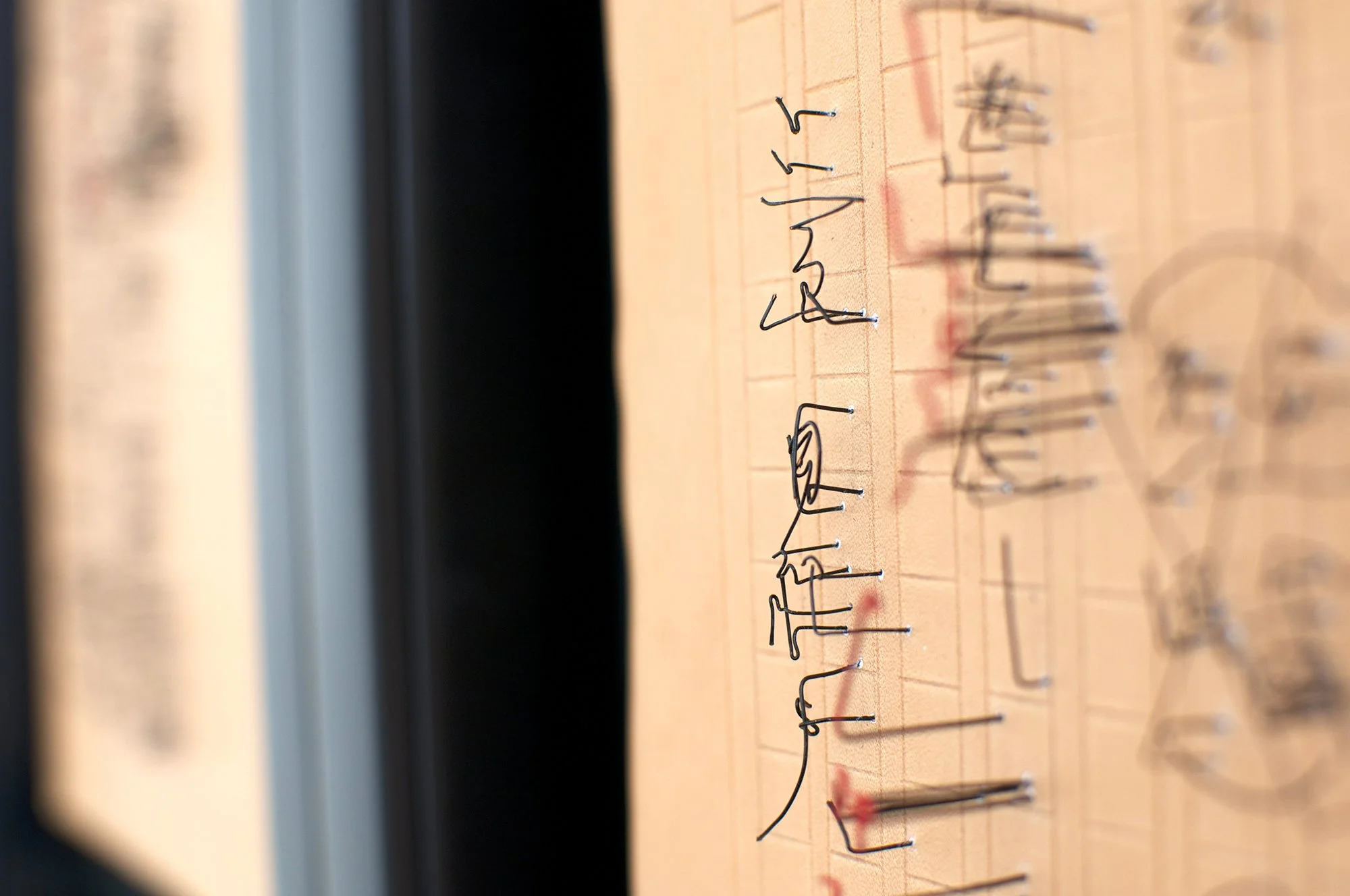 江戸川乱歩サイン / 2017 / サイズ:269×338 / 素材:カンヴァス、針金、ヌメ革 Photography by Sho Sato